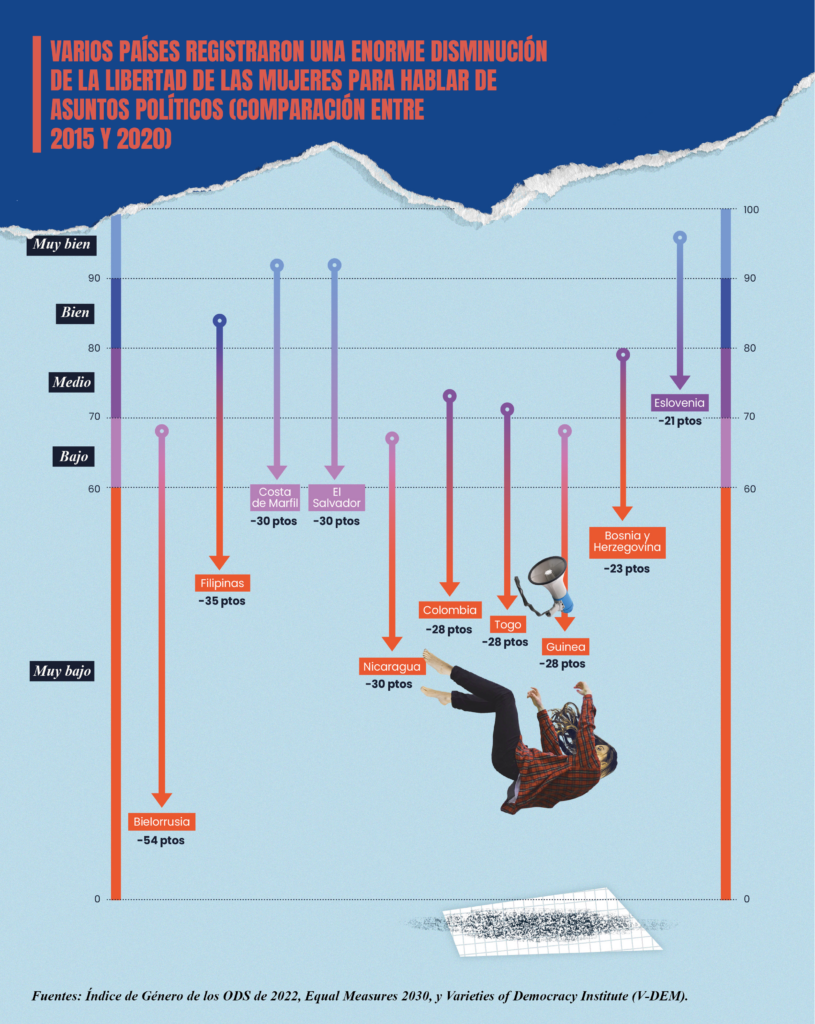 *Los avances tangibles se refieren a los 28 de los 135 países que vimos lograr “algún progreso” entre 2015 y 2020 en nuestro Índice de Género de los ODS de 2022: este es un progreso en el que su puntaje del Índice aumentó en más de un punto. Puede obtener más información sobre la puntuación de nuestro Índice aquí.