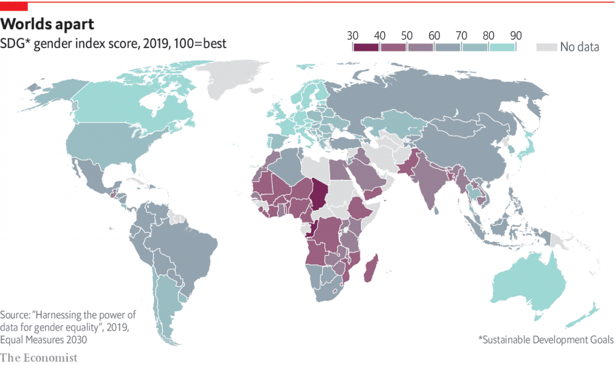 “THIS IS a man’s world,” sang James Brown in the spring of 1966. The adage still holds true today. In 2015 the United Nations General Assembly approved the Sustainable Development Goals (SDGs), a collection of targets for social progress to be achieved by 2030. The goals closest to being met are those for hunger and nutrition, water and sanitation, and health and education. In contrast, one of the objectives that the world is farthest from meeting concerns gender equality.